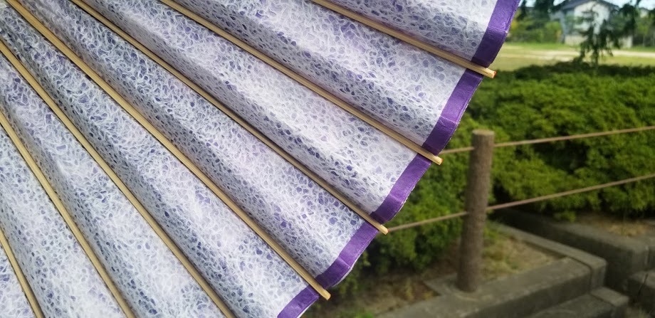 明兎では、色々な色の和紙にて、日傘もご用意しております。